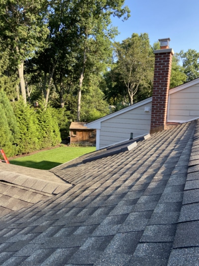 Our team of professionals takes pride in delivering quality roofing solutions that improve your home’s curb appeal and ensure long-lasting protection from the elements. And that’s just what we did for homeowners in Ramsey, New Jersey. Their roof had definitely reached the end of its lifespan as our clients complained that it had been leaking for quite some time. We restored the home’s protection with a roof replacement, along with some copper flashing around the chimney, providing peace of mind for the future.